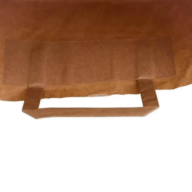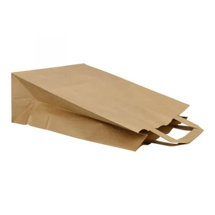 Beg kertas Kraft dengan pemegang kertas rata boleh digunakan dalam industri katering, di pasar raya dan sebagai hadiah. Mereka diperbuat daripada bahan -bahan yang kukuh dan tahan lama, boleh digunakan semula beberapa kali, boleh dibentuk dan terbiodegradasi.